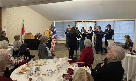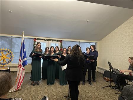 December 21 Rotary Christmas lunch meeting welcomed friends and family to a turkey meal before being entertained by the high school choral group Silvern Voices under the directorship of Katie Barrett The choir sang beautifully several Christmas selections to celebrate the festive season